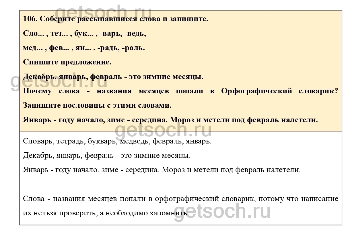 Рассмотрим ответы на Упражнение 106 из учебника по русскому языку для 2 класса Климановой