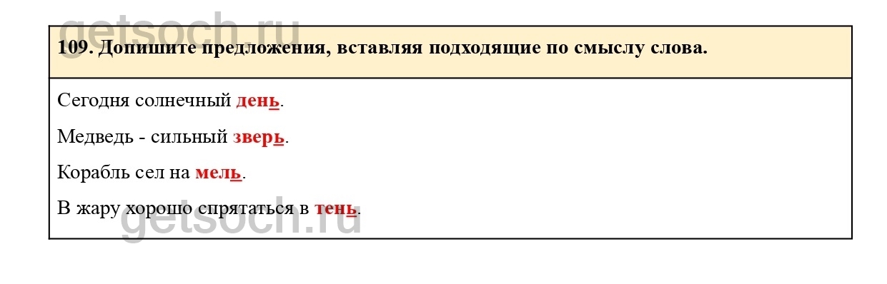 Рассмотрим ответы на Упражнение 109 из учебника по русскому языку для 2 класса Климановой