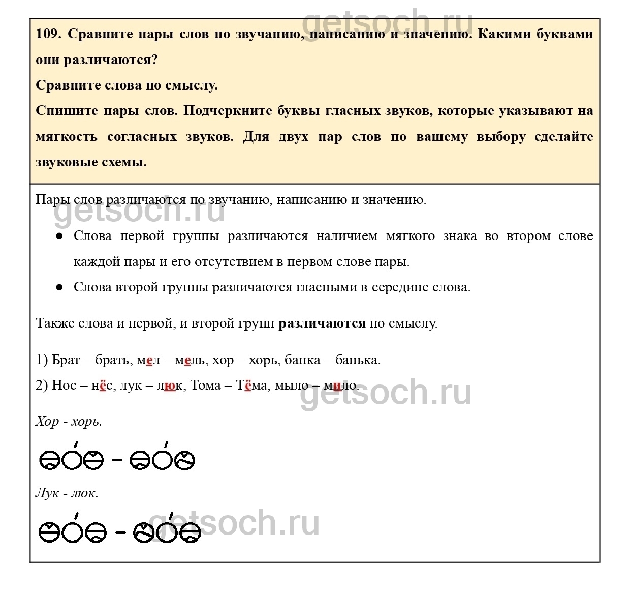 109. Сравните пары слов по звучанию, написанию и значению. Какими буквами