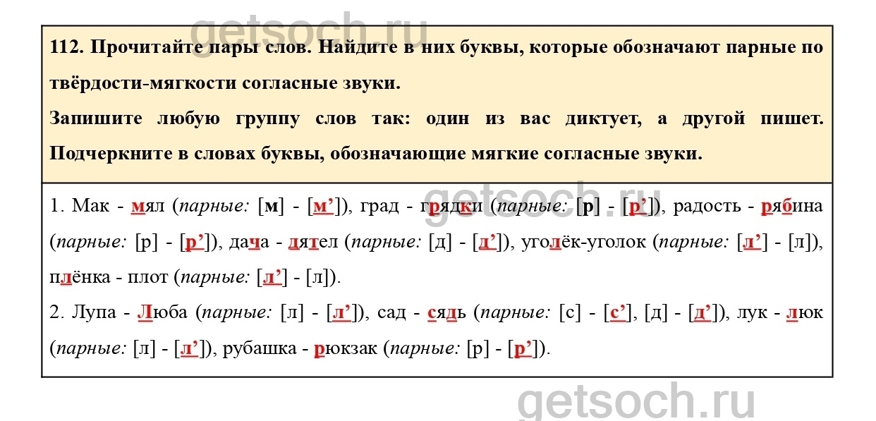 112. Прочитайте пары слов. Найдите в них буквы, которые обозначают парные по