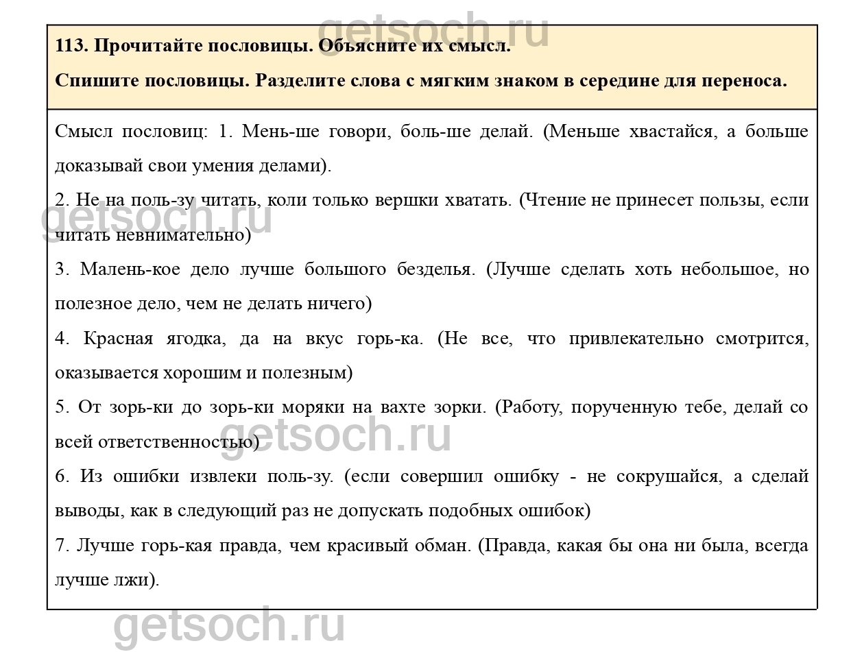 Рассмотрим ответы на Упражнение 113 из учебника по русскому языку для 2 класса Климановой