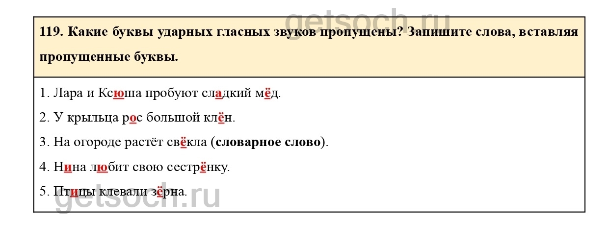 Рассмотрим ответы на Упражнение 119 из учебника по русскому языку для 2 класса Климановой