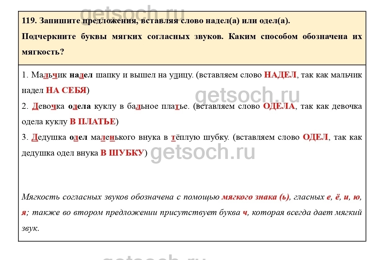 119. Запишите предложения, вставляя слово надел(а) или одел(а).