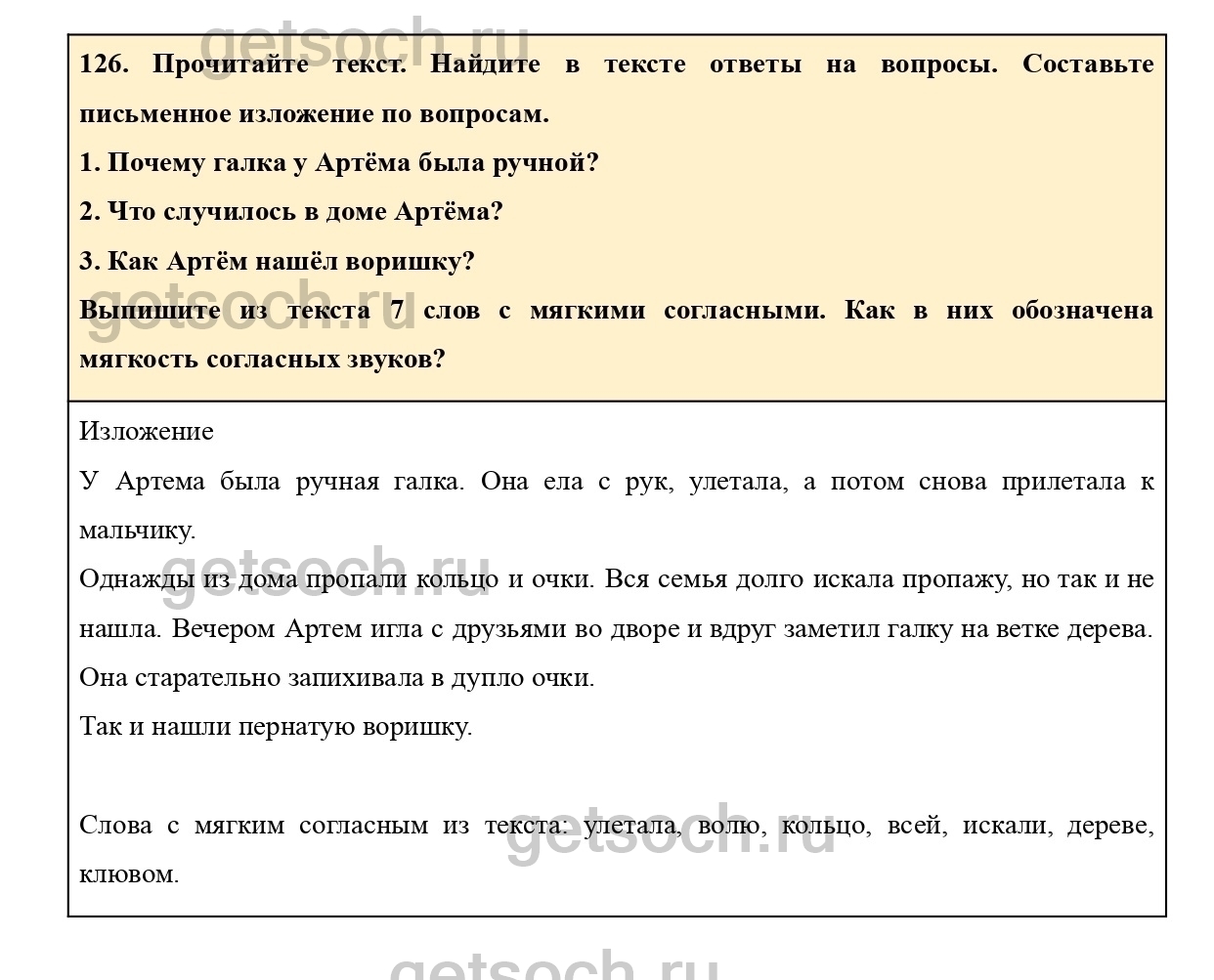 Рассмотрим ответы на Упражнение 126 из учебника по русскому языку для 2 класса Климановой
