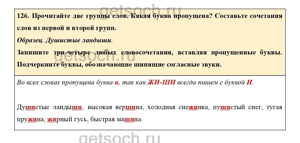 126. Прочитайте две группы слов. Какая буква пропущена? Составьте сочетания
