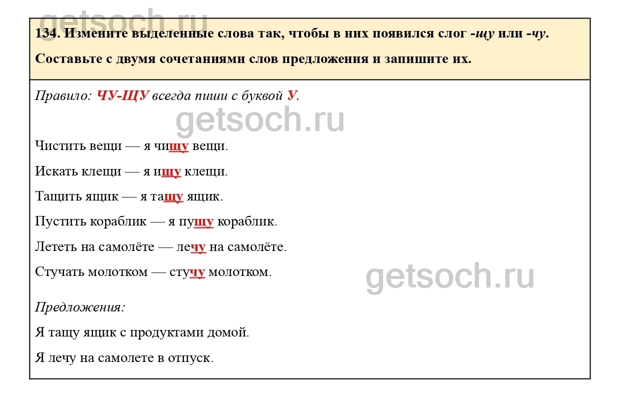 134. Измените выделенные слова так, чтобы в них появился слог -щу или -чу.