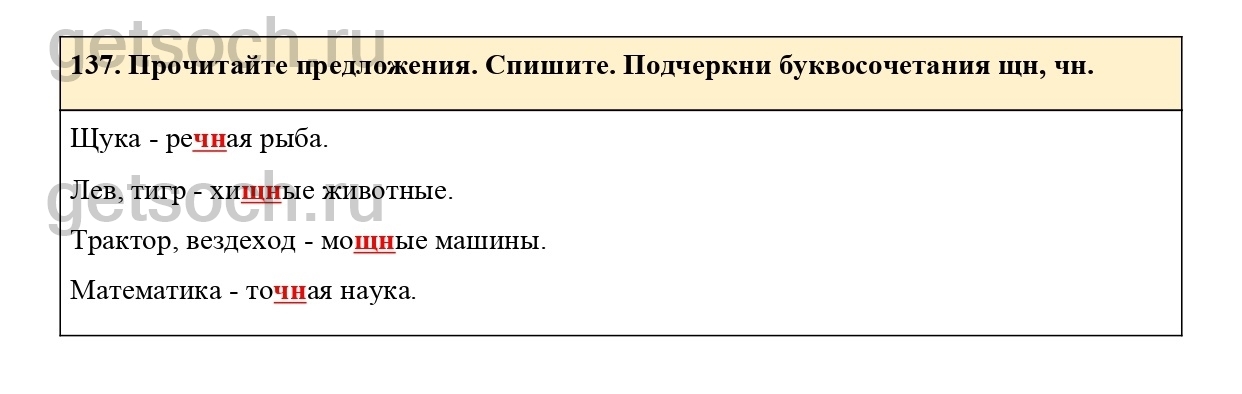 137. Прочитайте предложения. Спишите. Подчеркни буквосочетания щн, чн.