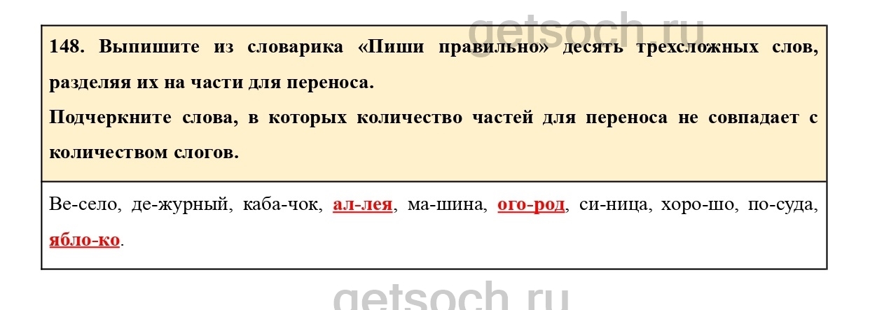 148. Выпишите из словарика «Пиши правильно» десять трехсложных слов,