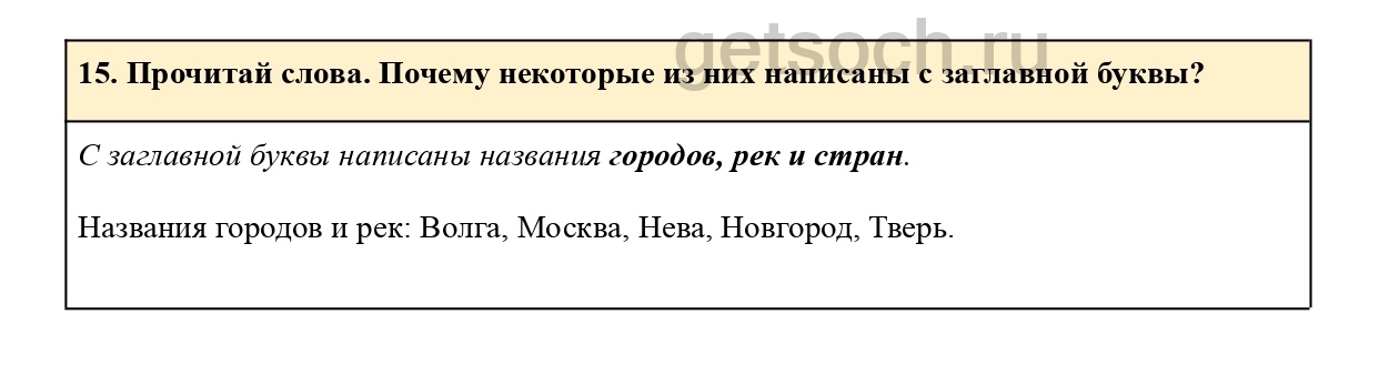 15. Прочитай слова. Почему некоторые из них написаны с заглавной буквы?