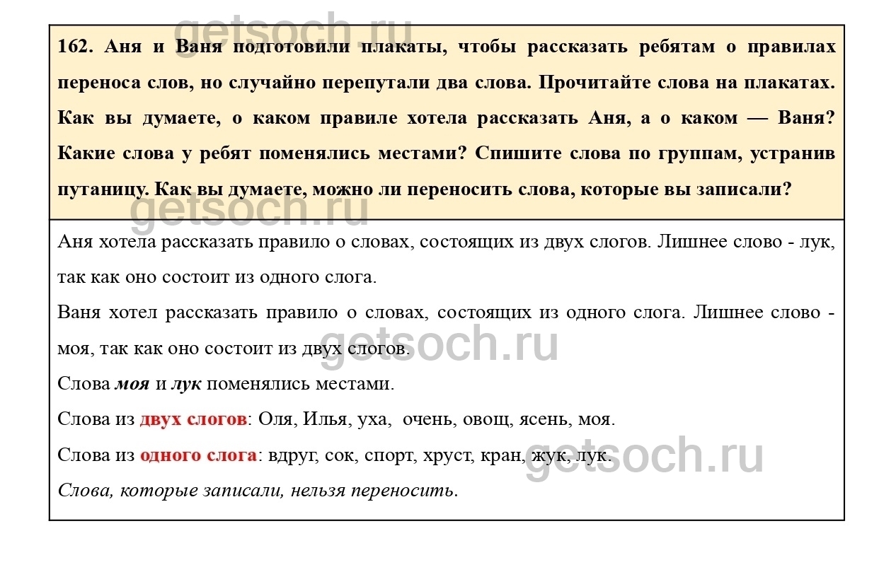 Рассмотрим ответы на Упражнение 162 из учебника по русскому языку для 2 класса Климановой