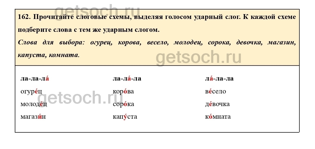 162. Прочитайте слоговые схемы, выделяя голосом ударный слог. К каждой схеме