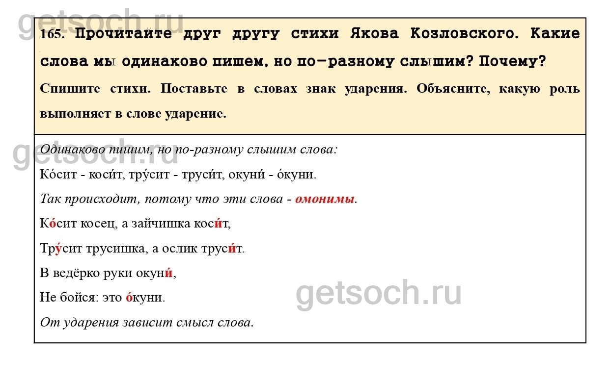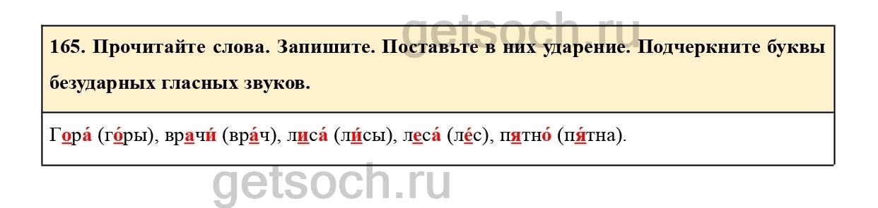 165. Прочитайте слова. Запишите. Поставьте в них ударение. Подчеркните буквы