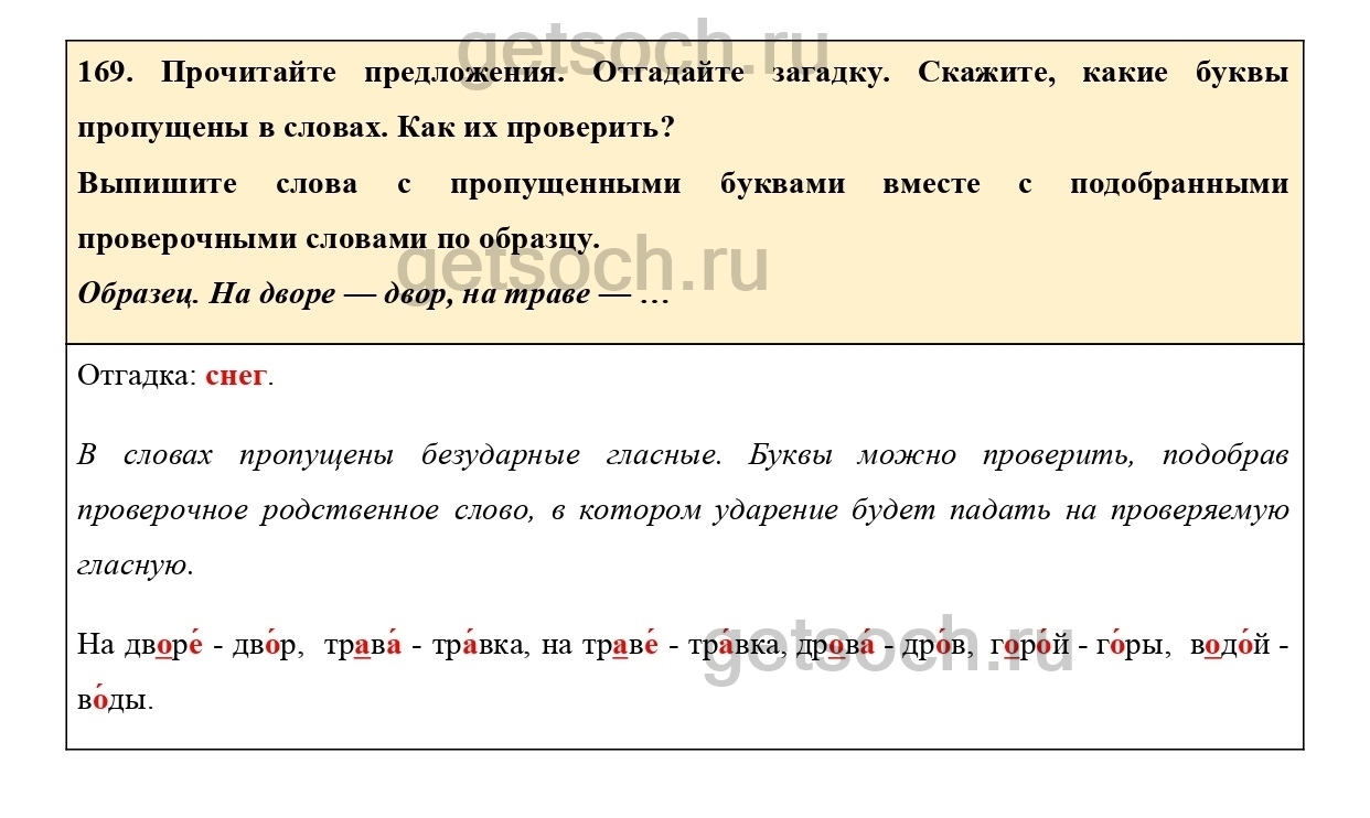Рассмотрим ответы на Упражнение 169 из учебника по русскому языку для 2 класса Климановой