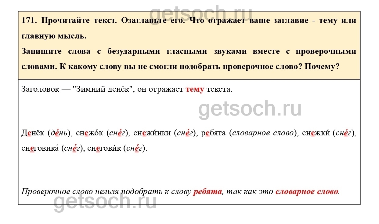 Рассмотрим ответы на Упражнение 171 из учебника по русскому языку для 2 класса Климановой
