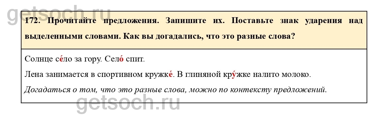 Рассмотрим ответы на Упражнение 172 из учебника по русскому языку для 2 класса Климановой