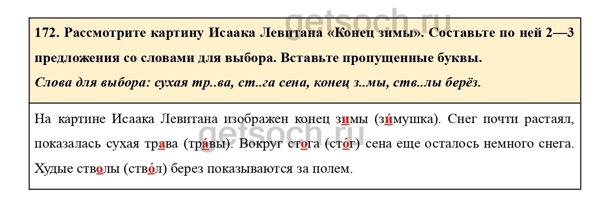 172. Рассмотрите картину Исаака Левитана «Конец зимы». Составьте по ней 2—3