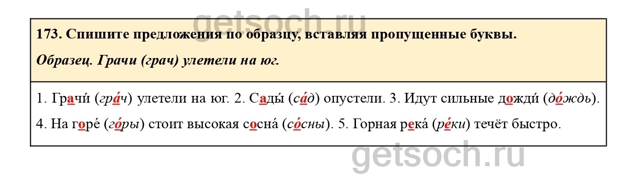 173. Спишите предложения по образцу, вставляя пропущенные буквы.