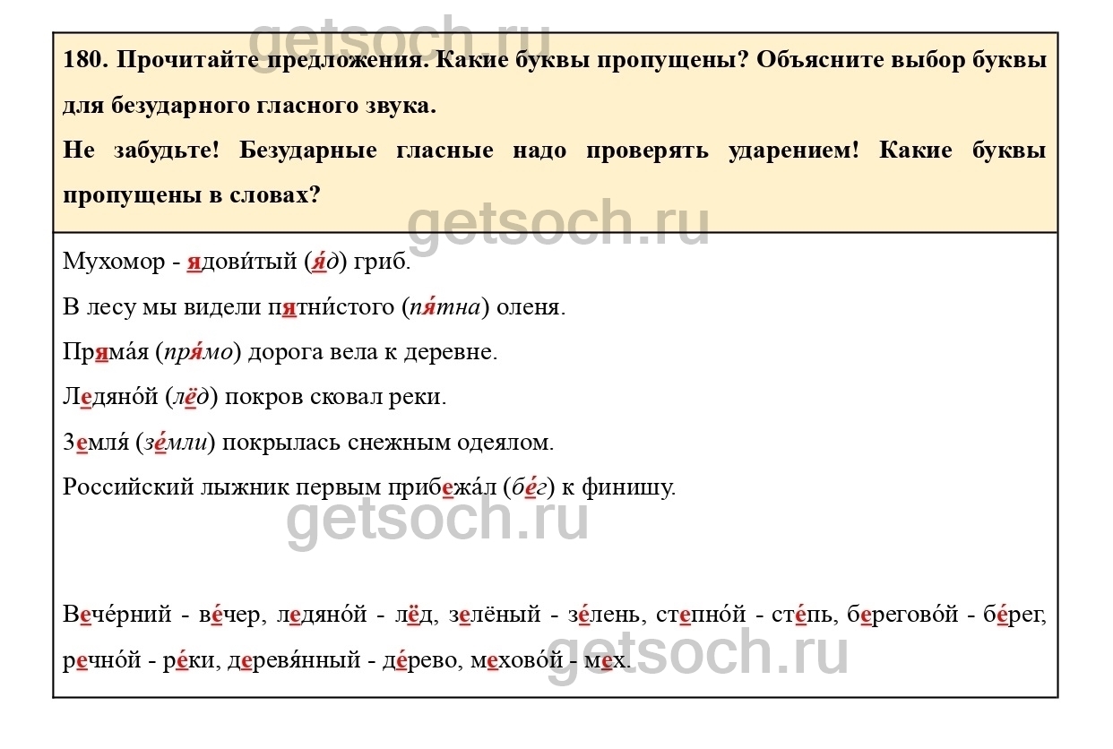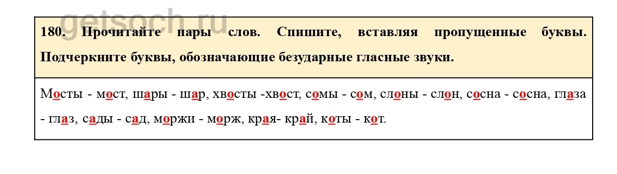 Рассмотрим ответы на Упражнение 180 из учебника по русскому языку для 2 класса Климановой