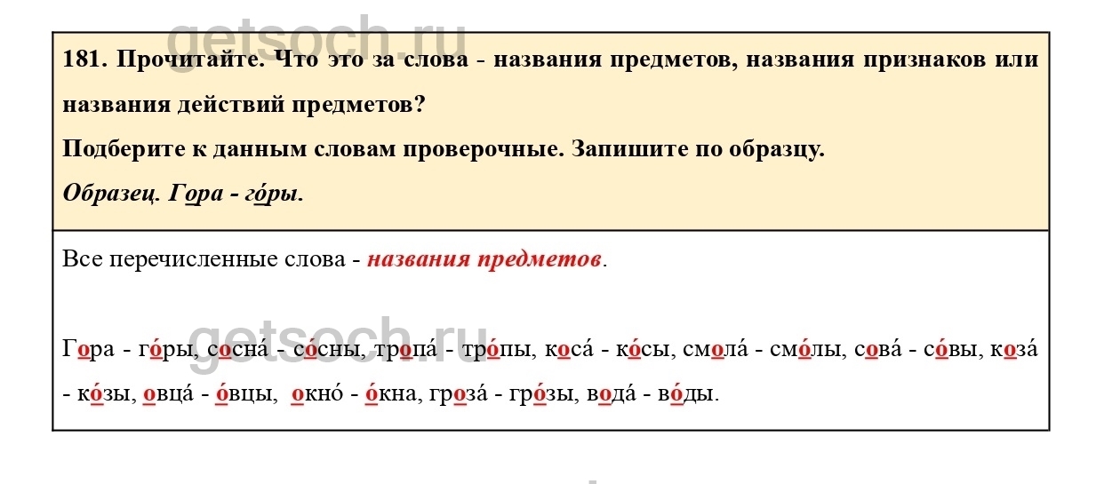 181. Прочитайте. Что это за слова – названия предметов, названия признаков или