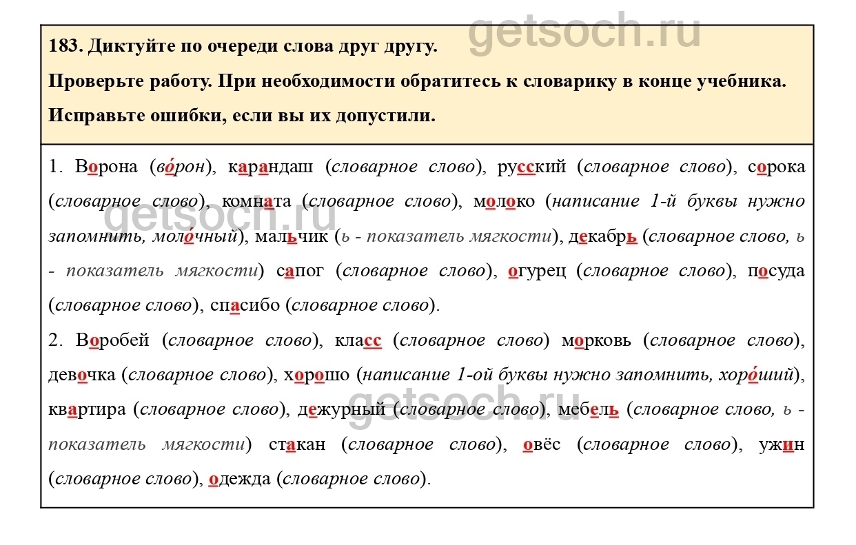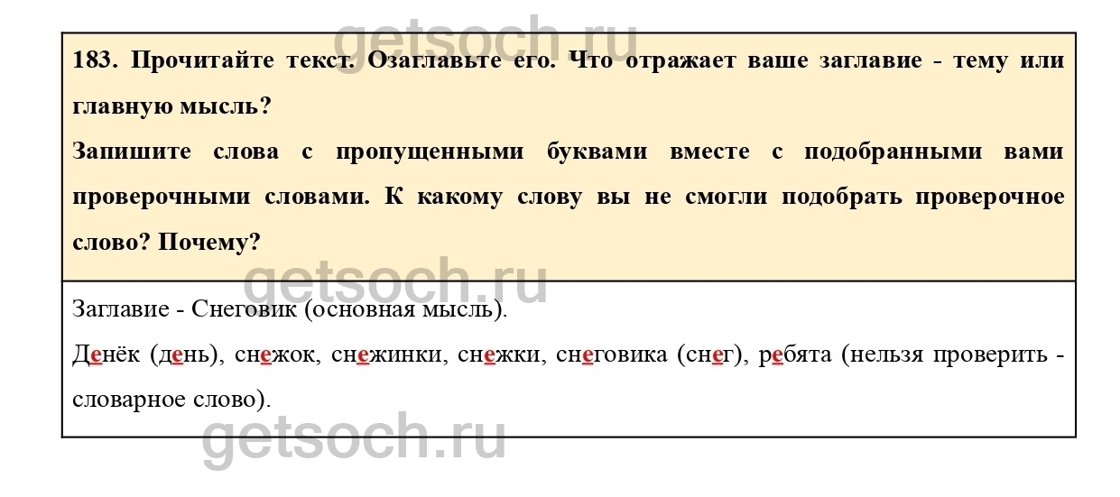 Рассмотрим ответы на Упражнение 183 из учебника по русскому языку для 2 класса Климановой