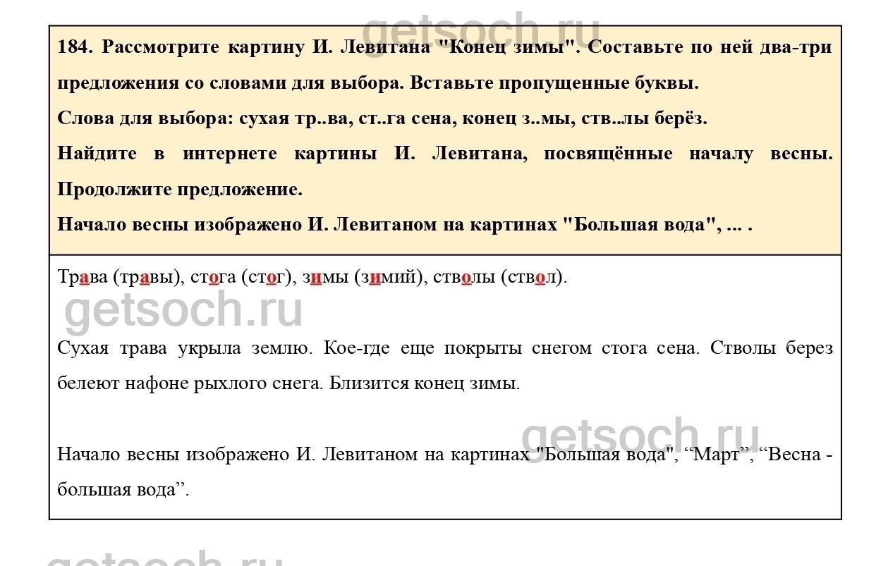 Рассмотрим ответы на Упражнение 184 из учебника по русскому языку для 2 класса Климановой