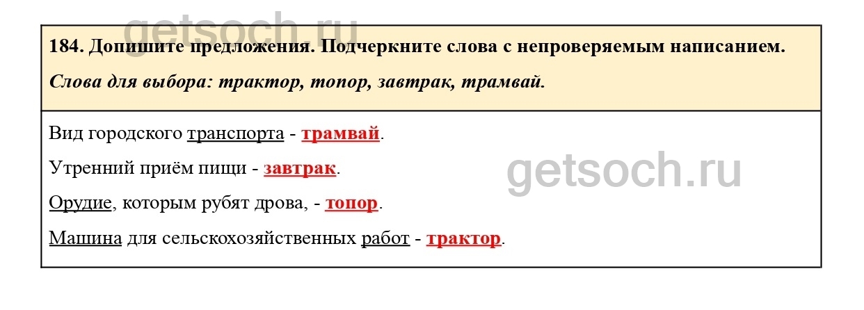 184. Допишите предложения. Подчеркните слова с непроверяемым написанием.