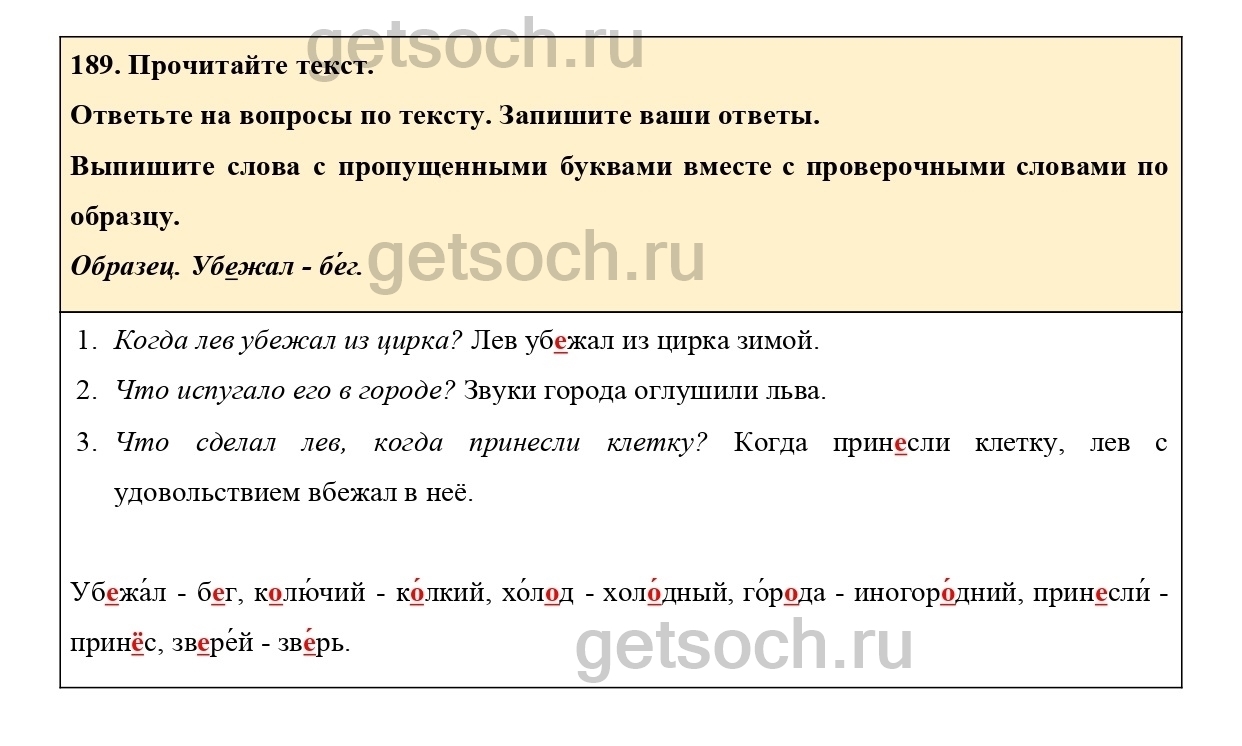Рассмотрим ответы на Упражнение 189 из учебника по русскому языку для 2 класса Климановой