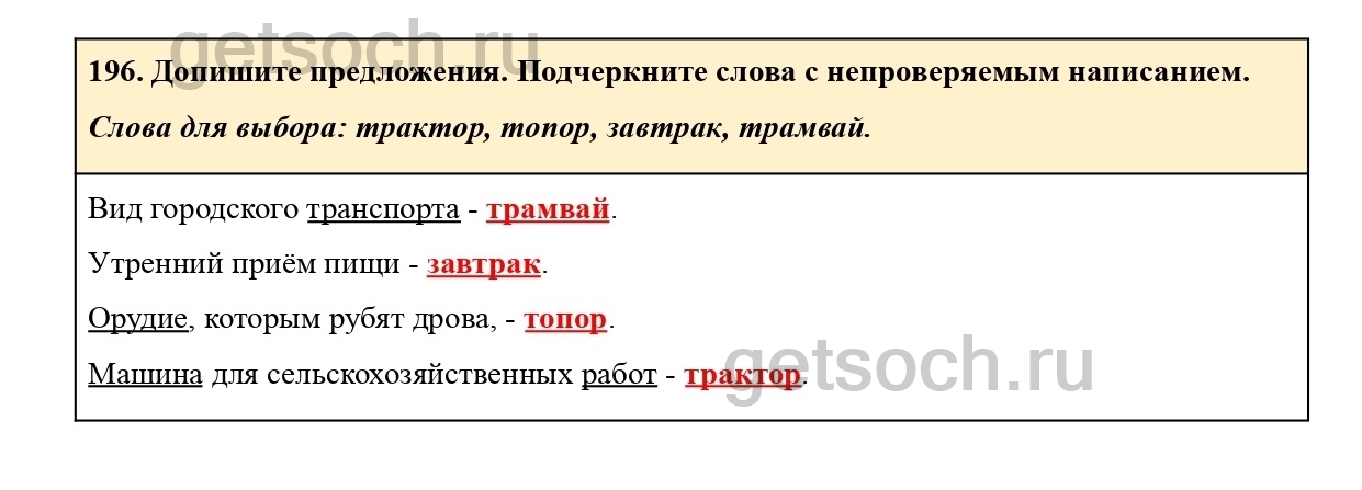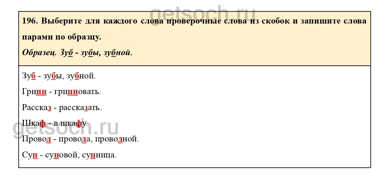 196. Выберите для каждого слова проверочные слова из скобок и запишите слова