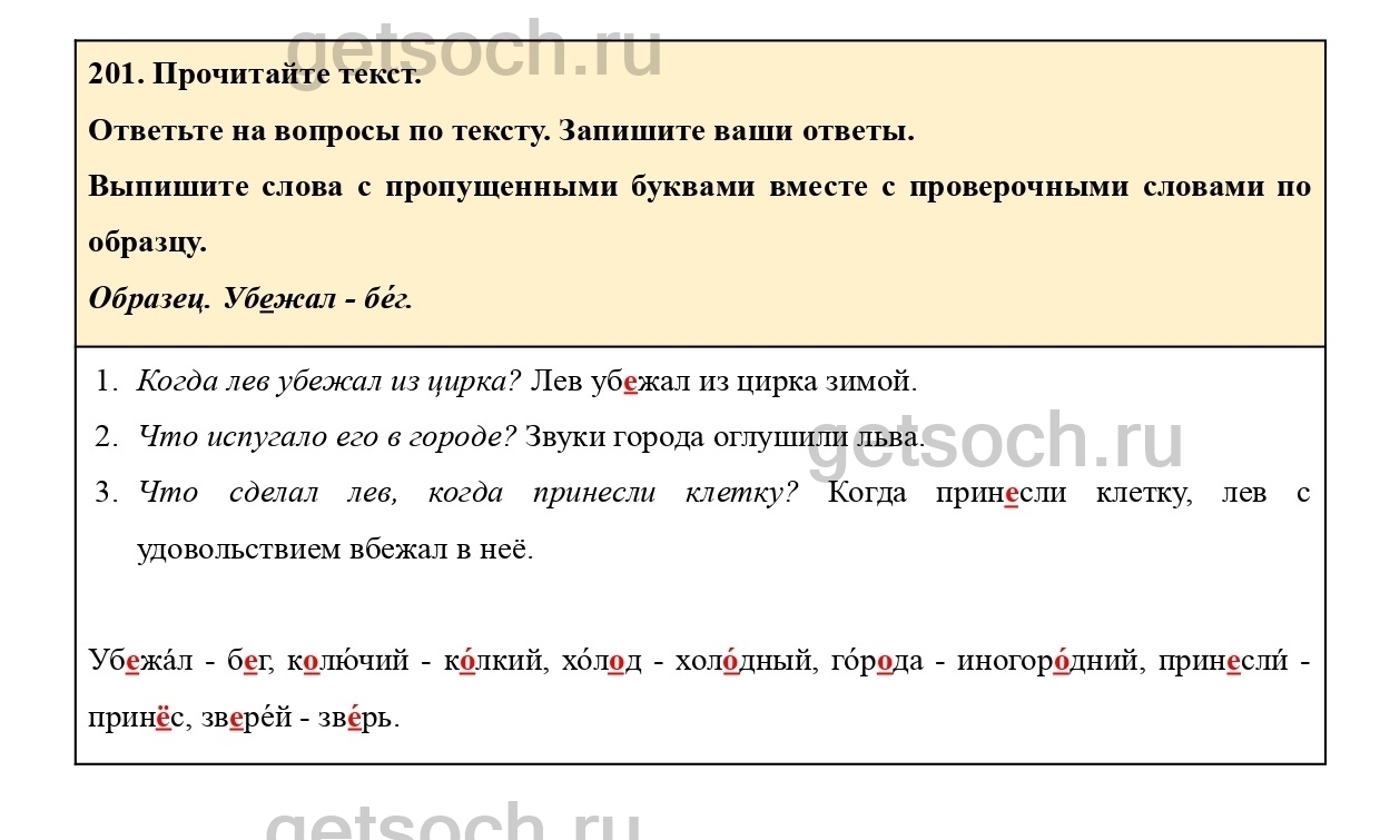 Рассмотрим ответы на Упражнение 201 из учебника по русскому языку для 2 класса Климановой