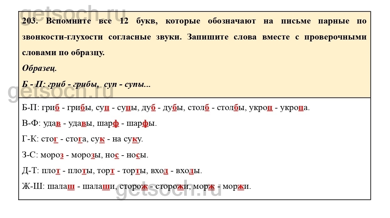 203. Вспомните все 12 букв, которые обозначают на письме парные по звонкости-