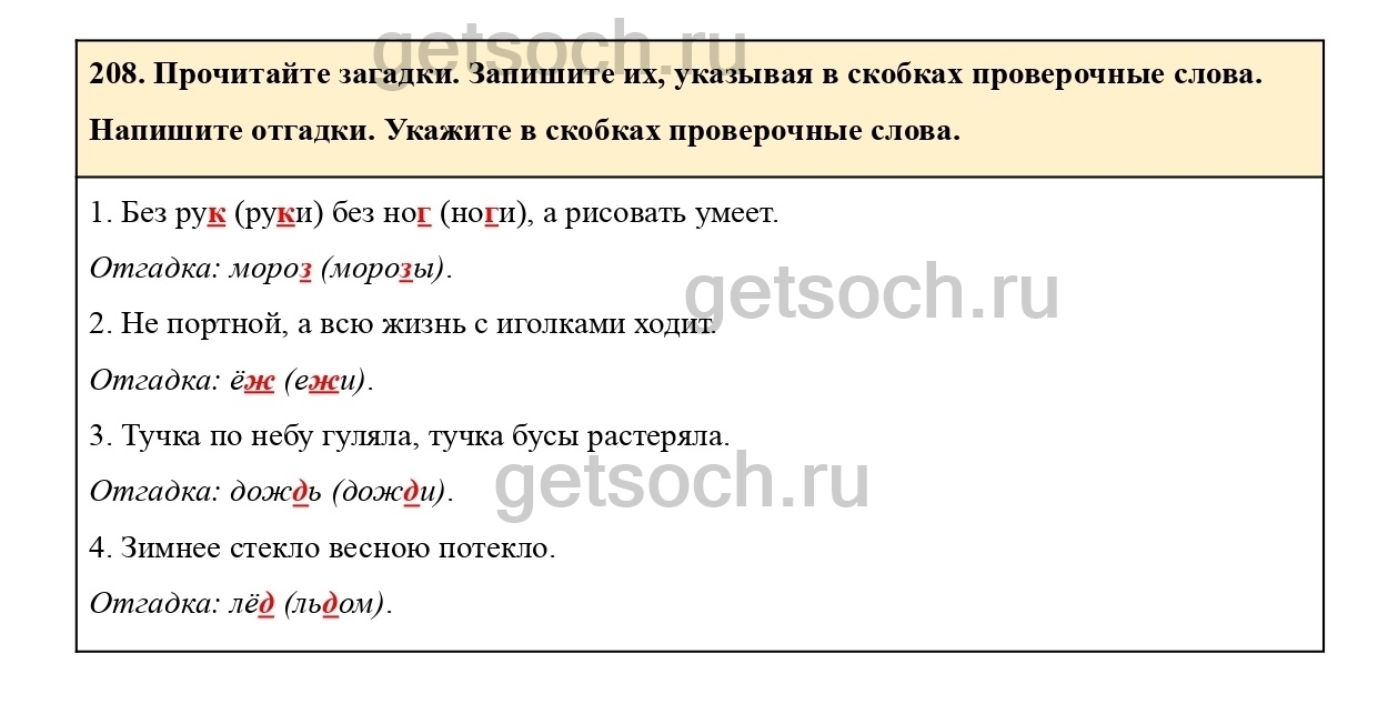 Рассмотрим ответы на Упражнение 208 из учебника по русскому языку для 2 класса Климановой