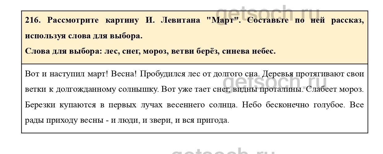 Рассмотрим ответы на Упражнение 216 из учебника по русскому языку для 2 класса Климановой
