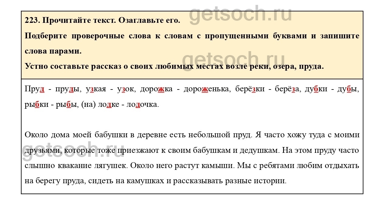 Рассмотрим ответы на Упражнение 223 из учебника по русскому языку для 2 класса Климановой