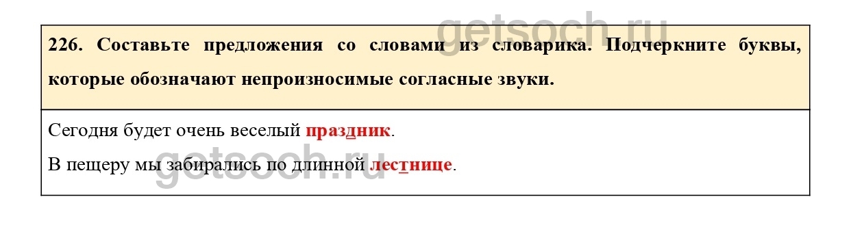 226. Составьте предложения со словами из словарика. Подчеркните буквы,
