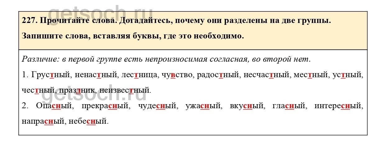 227. Прочитайте слова. Догадайтесь, почему они разделены на две группы.