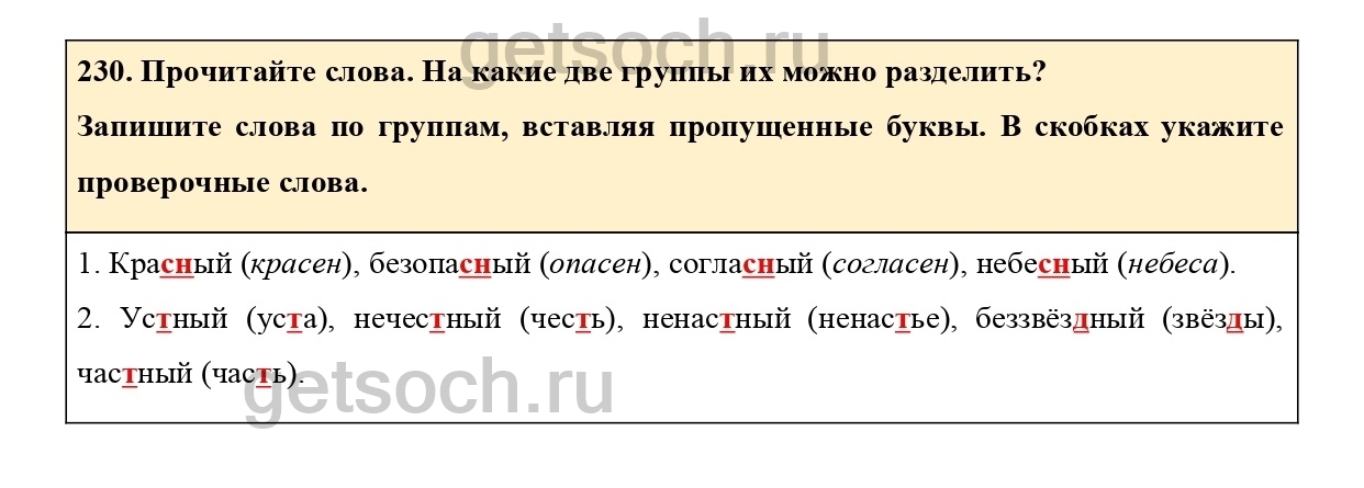 230. Прочитайте слова. На какие две группы их можно разделить?