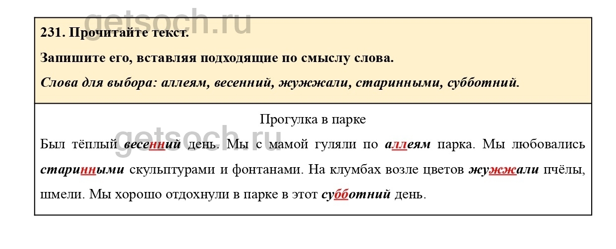 Рассмотрим ответы на Упражнение 231 из учебника по русскому языку для 2 класса Климановой