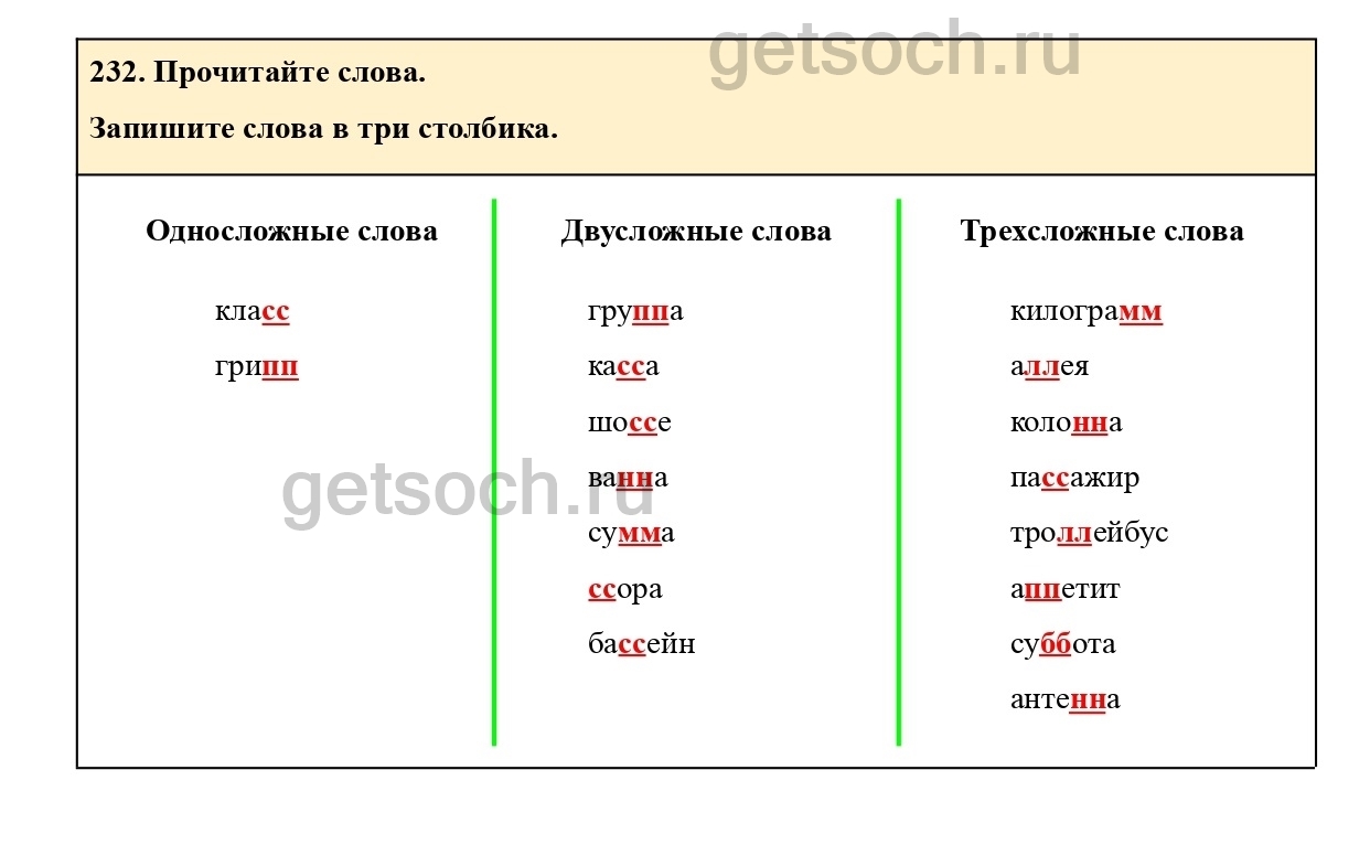 Рассмотрим ответы на Упражнение 232 из учебника по русскому языку для 2 класса Климановой