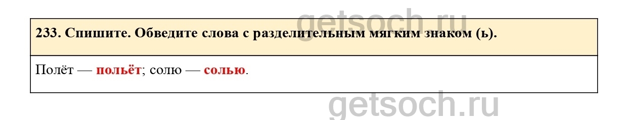 233. Спишите. Обведите слова с разделительным мягким знаком (ь).