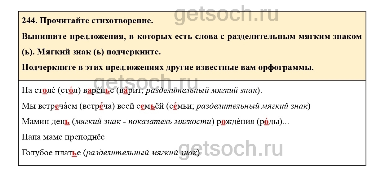 Рассмотрим ответы на Упражнение 244 из учебника по русскому языку для 2 класса Климановой