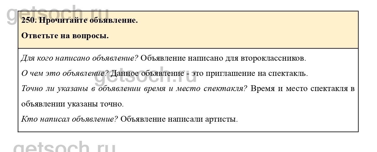 Рассмотрим ответы на Упражнение 250 из учебника по русскому языку для 2 класса Климановой