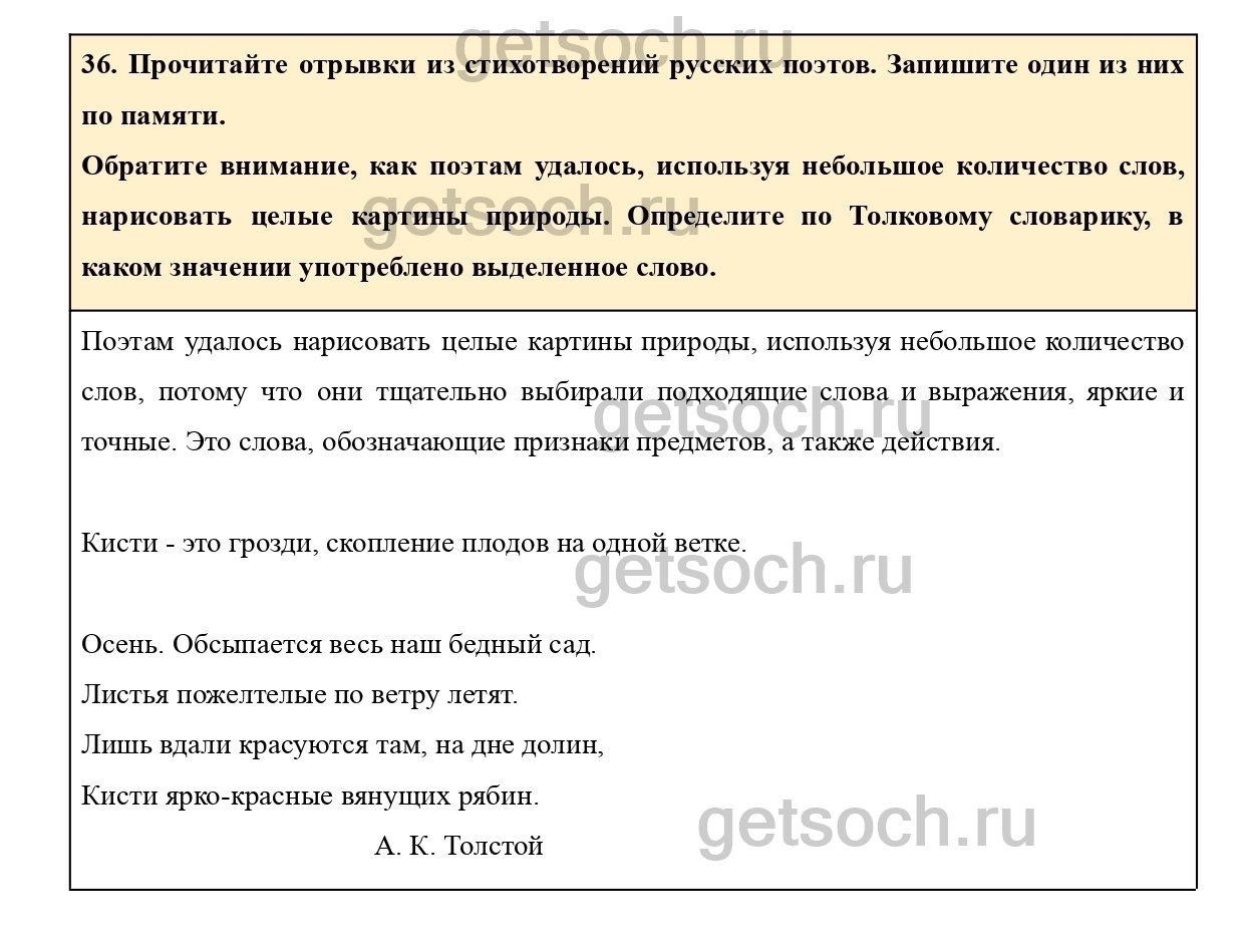 Рассмотрим ответы на Упражнение 36 из учебника по русскому языку для 2 класса Климановой