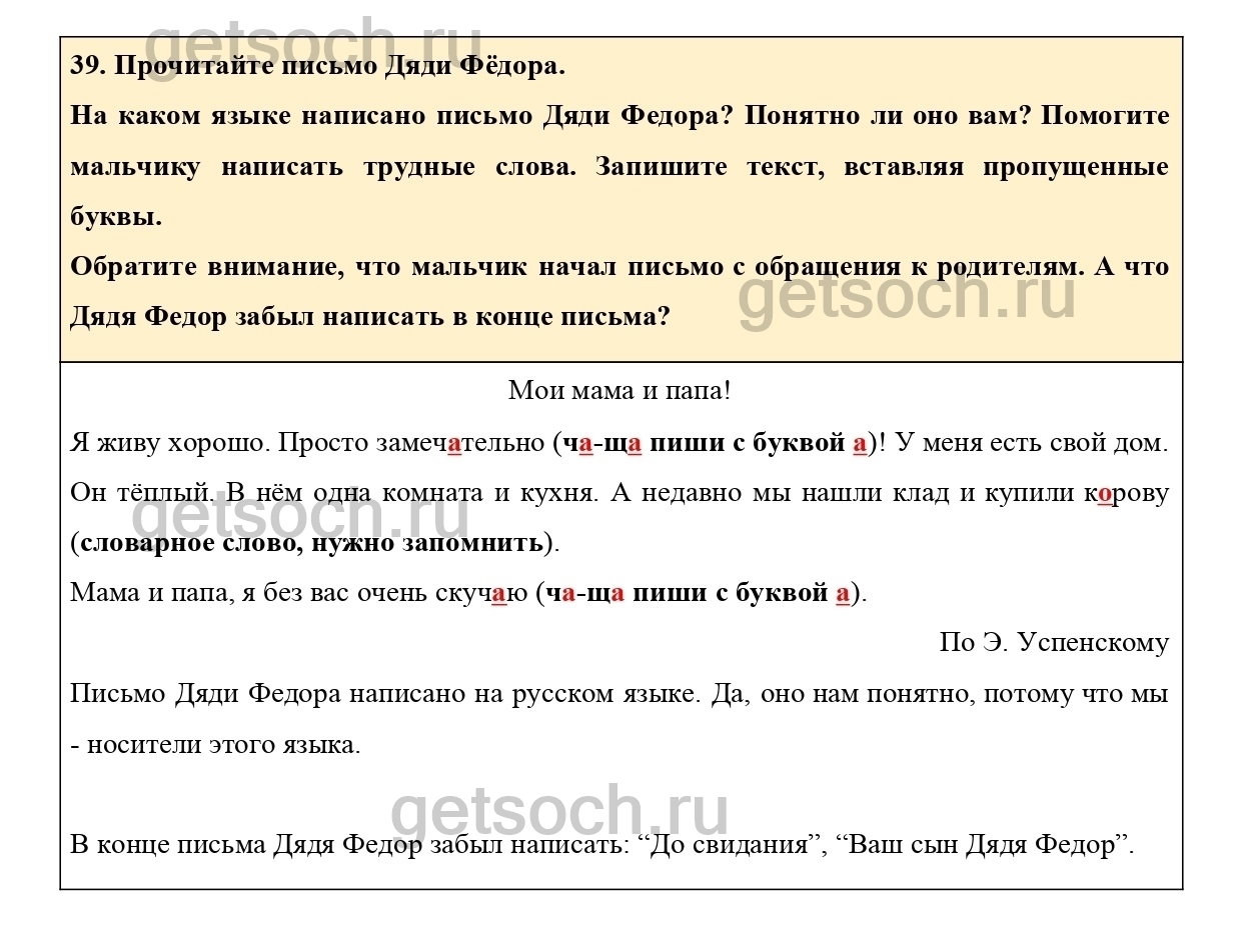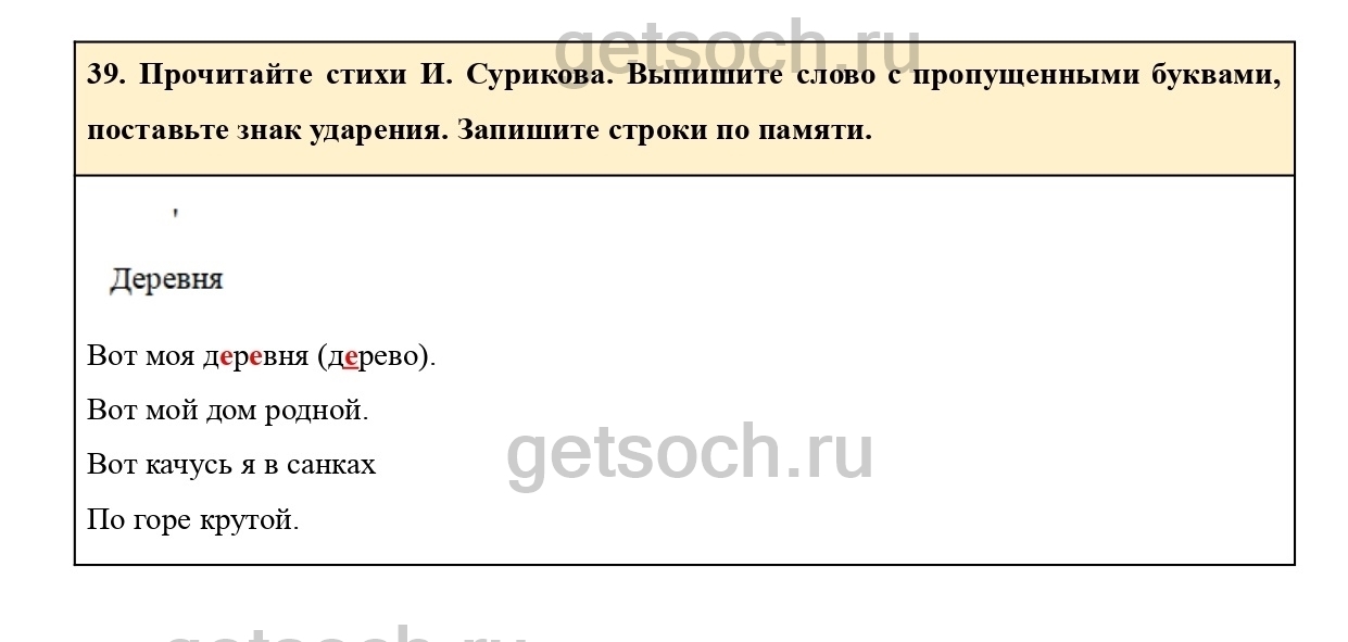 Рассмотрим ответы на Упражнение 39 из учебника по русскому языку для 2 класса Климановой