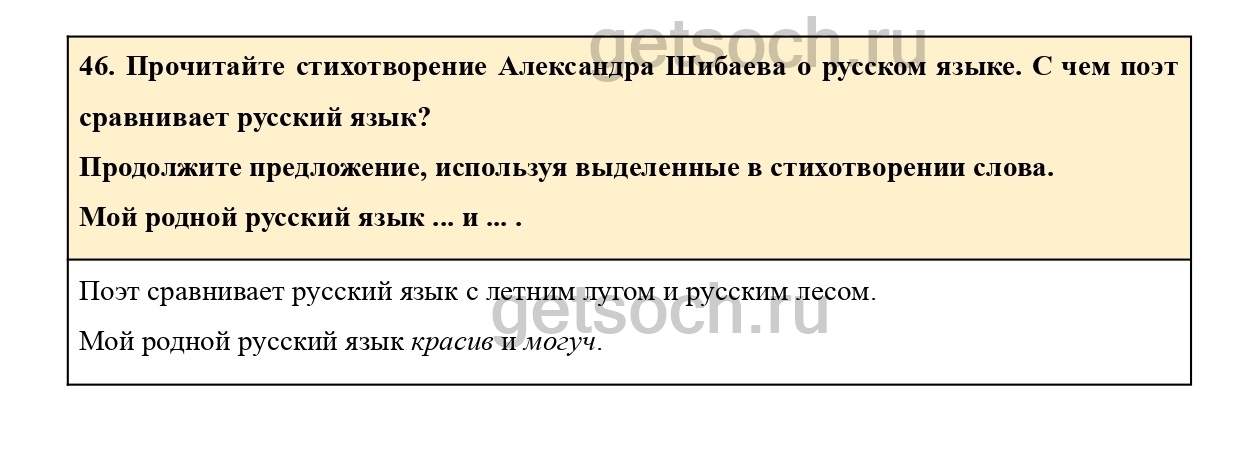 Рассмотрим ответы на Упражнение 46 из учебника по русскому языку для 2 класса Климановой