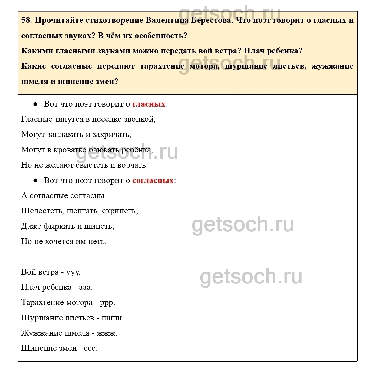 58. Прочитайте стихотворение Валентина Берестова. Что поэт говорит о гласных