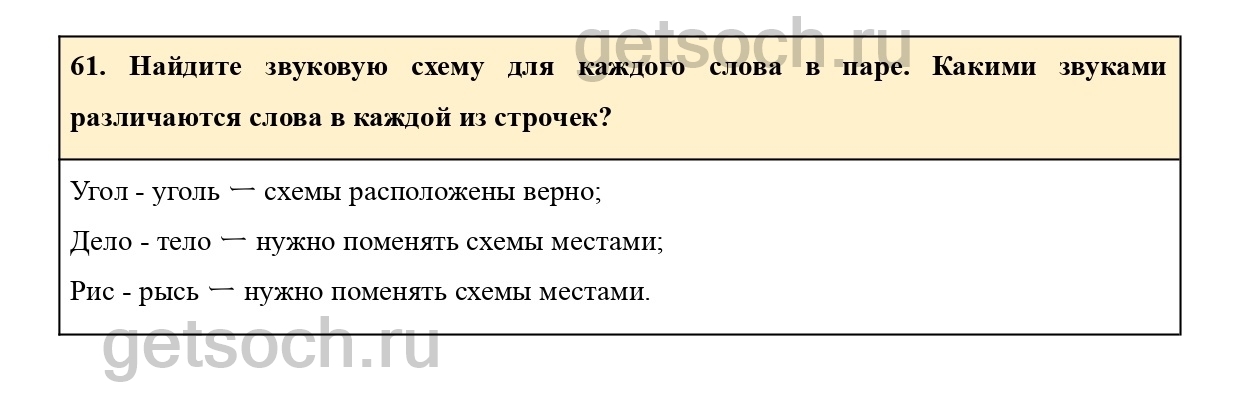 61. Найдите звуковую схему для каждого слова в паре. Какими звуками