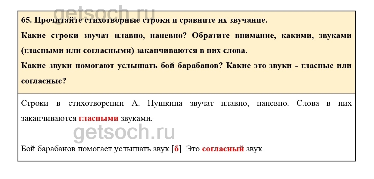 65. Прочитайте стихотворные строки и сравните их звучание.