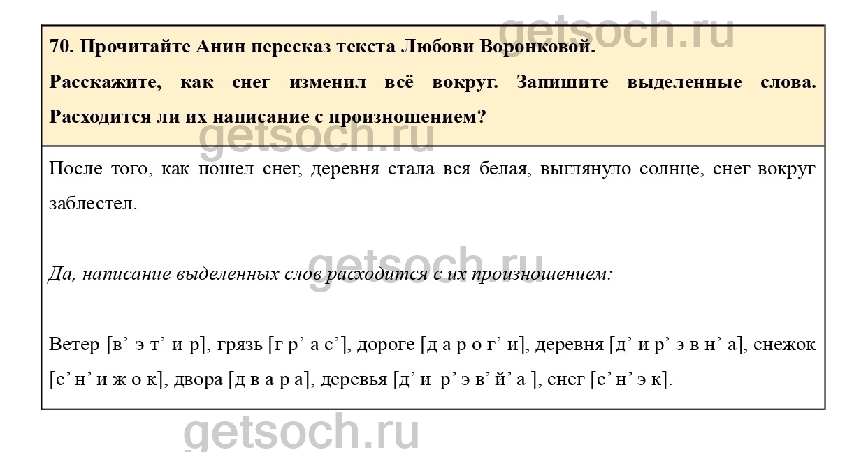 Рассмотрим ответы на Упражнение 70 из учебника по русскому языку для 2 класса Климановой