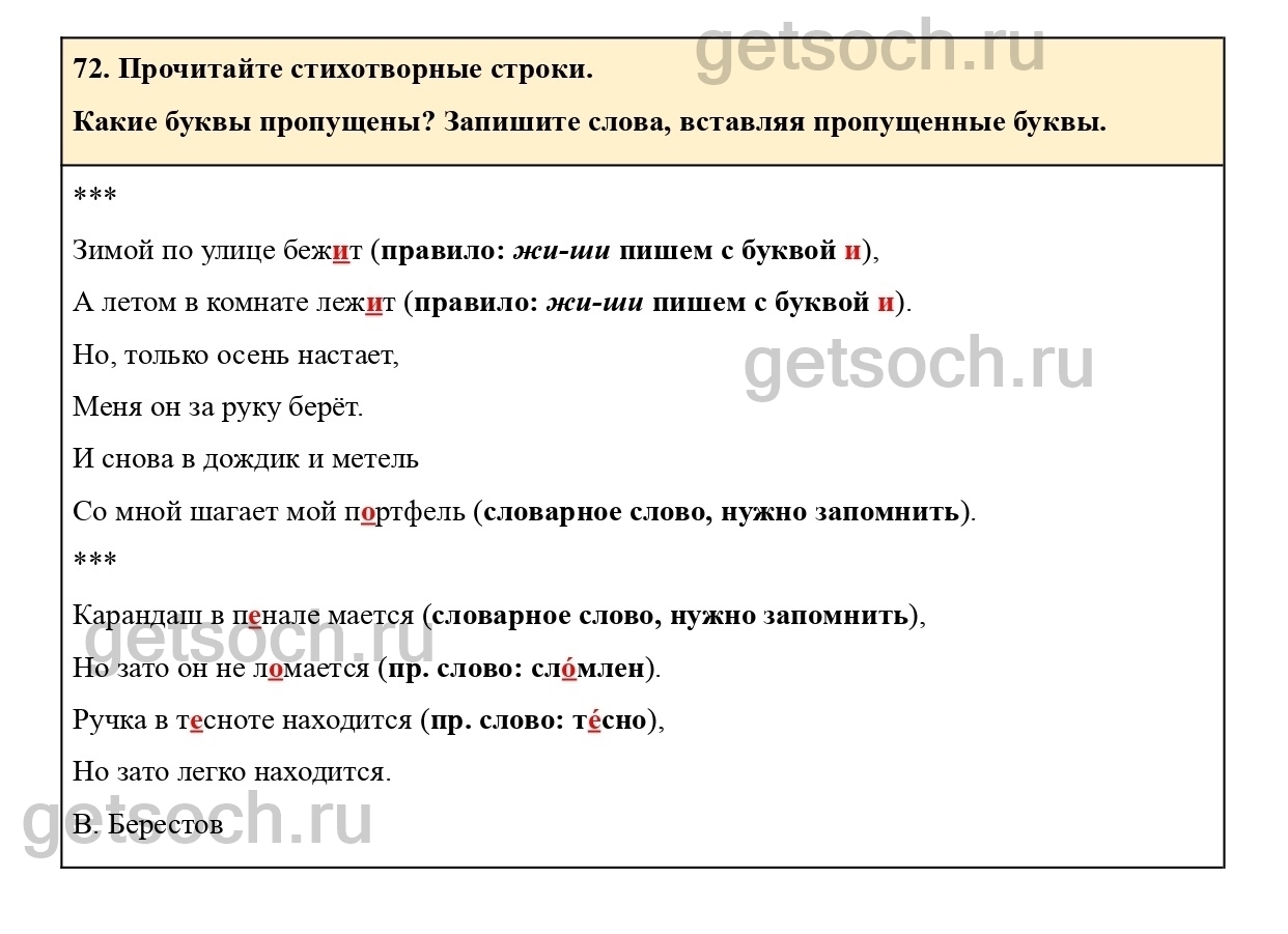 Рассмотрим ответы на Упражнение 72 из учебника по русскому языку для 2 класса Климановой