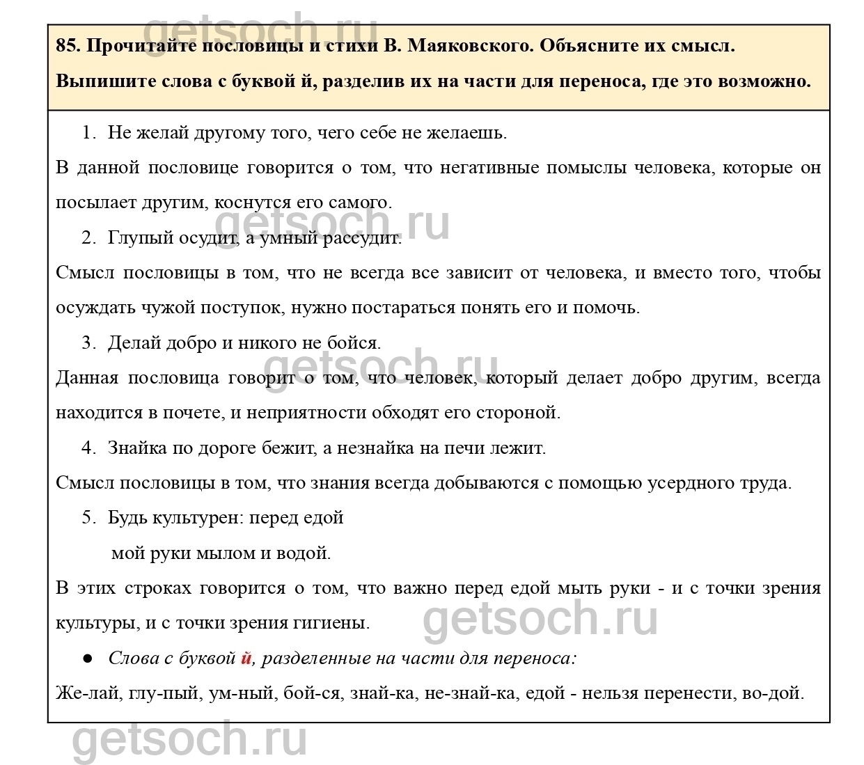 Рассмотрим ответы на Упражнение 85 из учебника по русскому языку для 2 класса Климановой